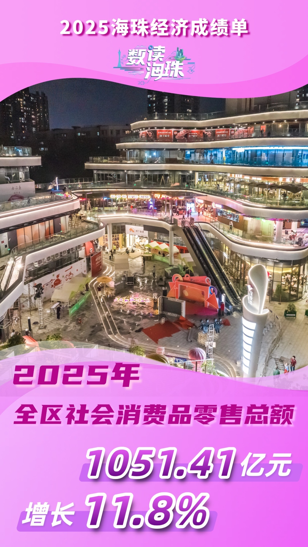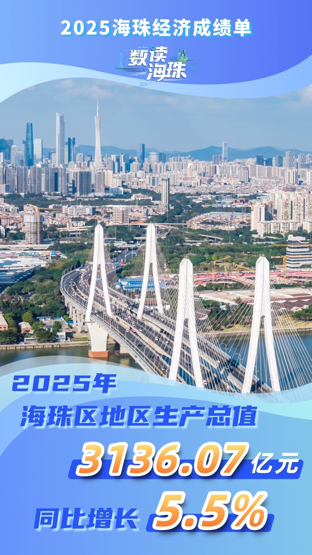 2025年,海珠区锚定“走在前、作示范、挑大梁”的使命任务,对标先进精准施策,落细落实各项工作,强动能稳生产、扩内需促消费、抓项目深挖潜,全年经济运行呈现向新向优发展的良好态势,经济增长连续三年领跑全市。